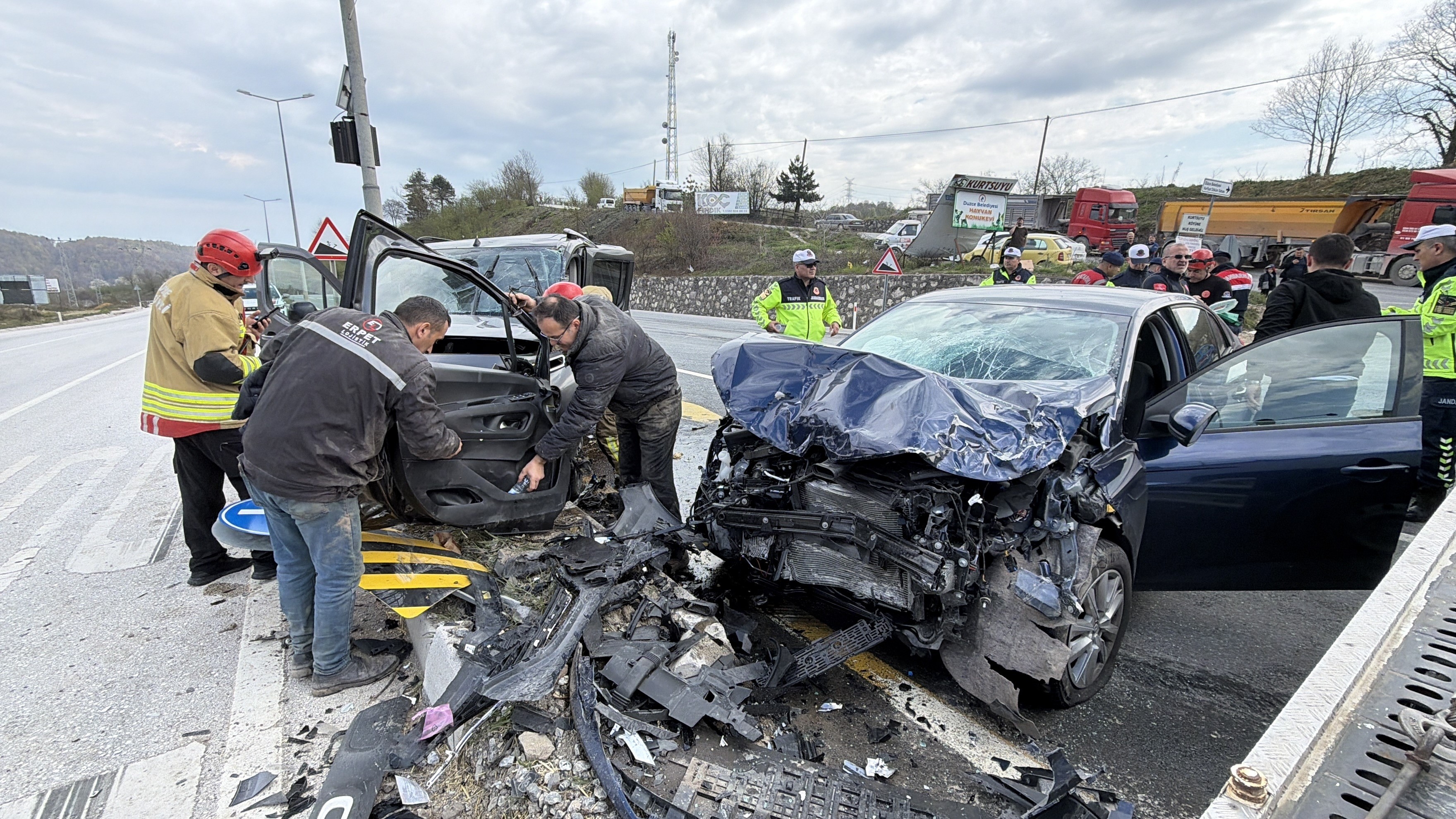 Düzce-Zonguldak D-655 Karayolu'nda, Zonguldak istikametine seyreden Rukiye D. idaresindeki 81 AFP 035 plakalı otomobil, Kurtsuyu Kavşağı’nda Düzce yönüne dönmek isteyen Teyfik Can E. yönetimindeki 54 AJD 593 plakalı hafif ticari araçla çarpıştı. Kullanılamaz hale gelen her iki araçta, sürücüler bulundukları yerde sıkıştı.