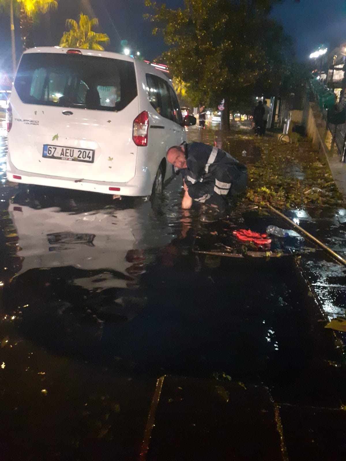“Karadeniz Ereğli’de aşırı yağmur, dolu ve fırtınayla birleşince bazı bölgelerde su taşkınlarına yol açtı. Belediye ekipleri afet durumunun ilk anından itibaren yaşanan olumsuzluklara müdahale etti. Ekipler, bugün ve yarın da devam etmesi beklenen kötü hava koşullarına karşı çalışmalarını yürütüyorlar. Kdz. Ereğli’de dün akşam saatlerinde başlayan aşırı yağmur, dolu ve fırtınayla birleşince çarşı merkezi ve bazı bölgelerde su taşkınlarına yol açtı. Kdz. Ereğli Belediyesi’ne bağlı Su ve Kanalizasyon İşleri, Fen İşleri, Temizlik İşleri, İtfaiye ve Zabıta ekipleri afet anının ilk dakikalarından itibaren olumsuzluk yaşanan bölgelere müdahale etti.