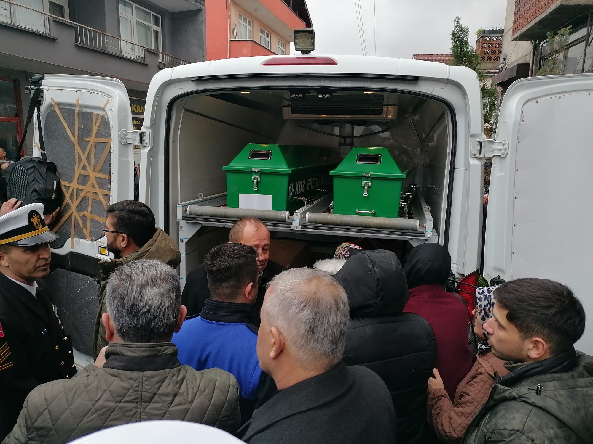 Karadeniz Ereğli’de, 27 yaşında kalbine yenilen Astsubay Mert Necati Günay için evinin önünde helallik alındı.