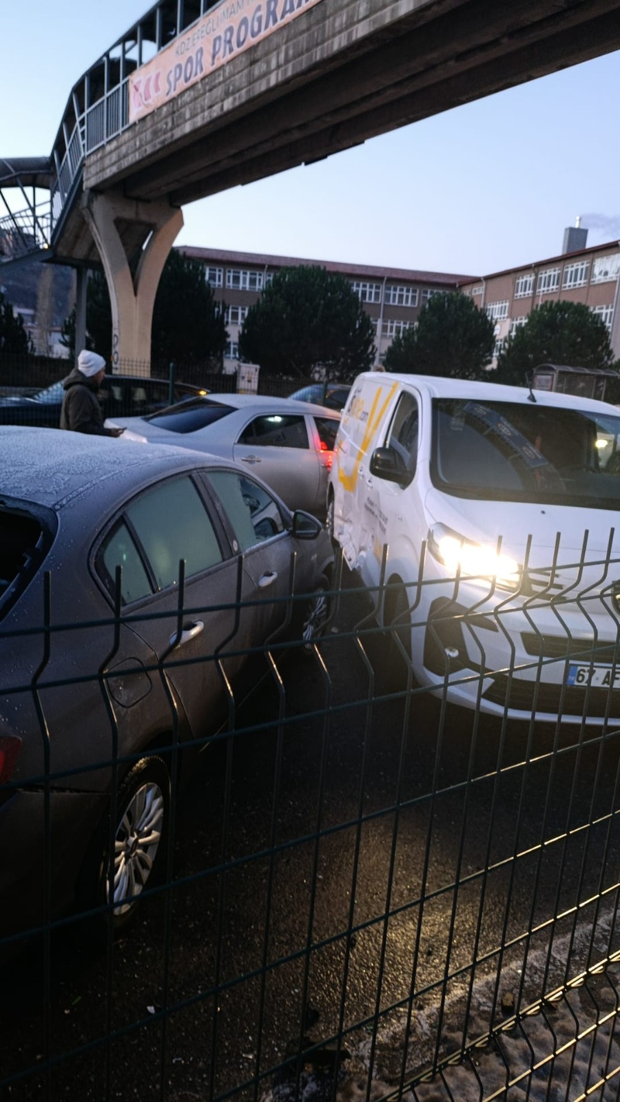 Karadeniz Ereğli’de, araç kullanmanın güçleştiği buzlu yolda meydana gelen trafik kazasında, 5 araçta maddi zarar oluştu. Trafiğe kapanan güzergah nedeni ile okul ve işe gidecekler geç kaldı.
