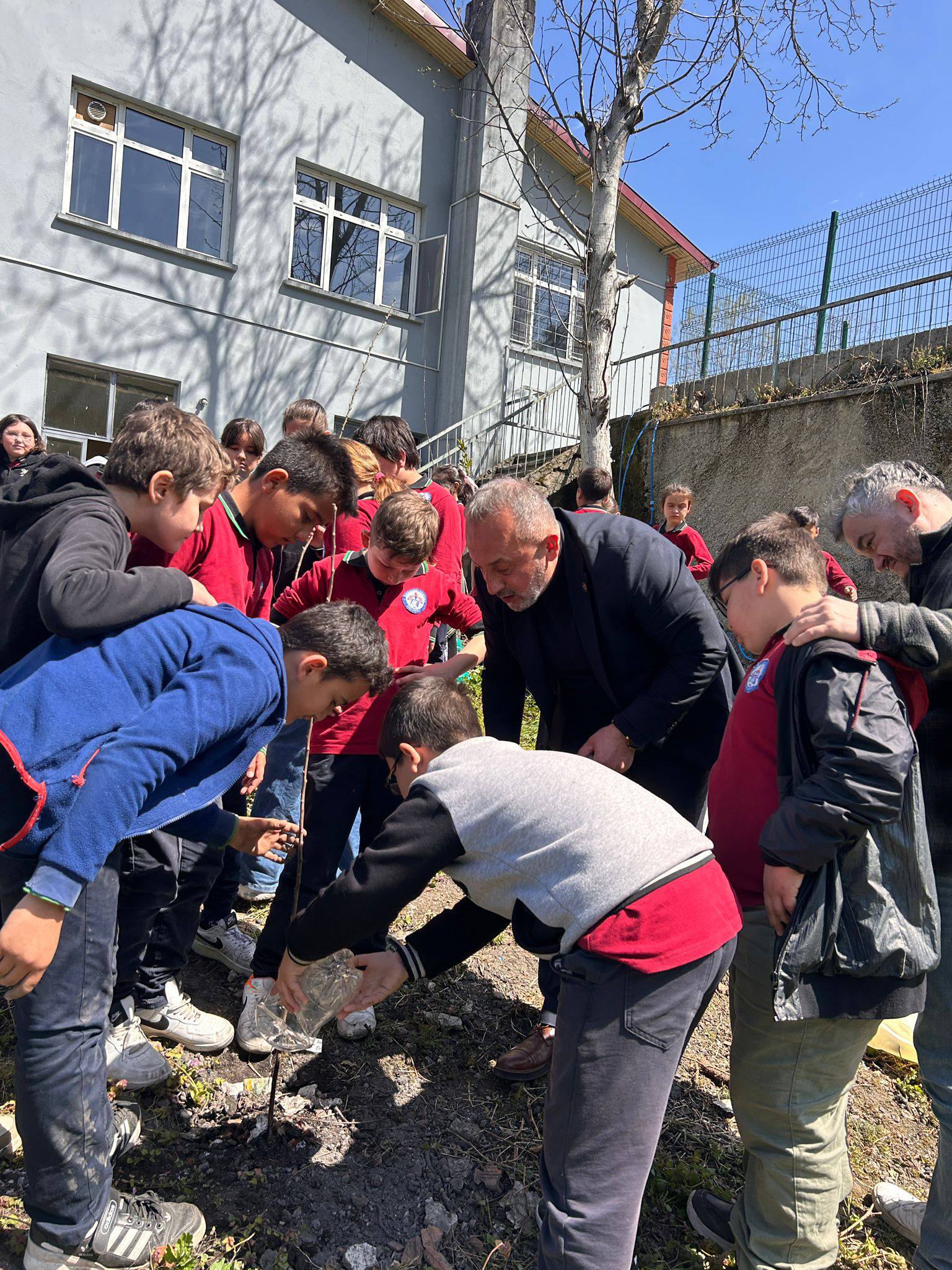 Zonguldak ili Ereğli ilçesi Kızılcapınar köyündeki öğrencilerin, okullarının bahçesine meyve fidanları diktiği bildirildi.
