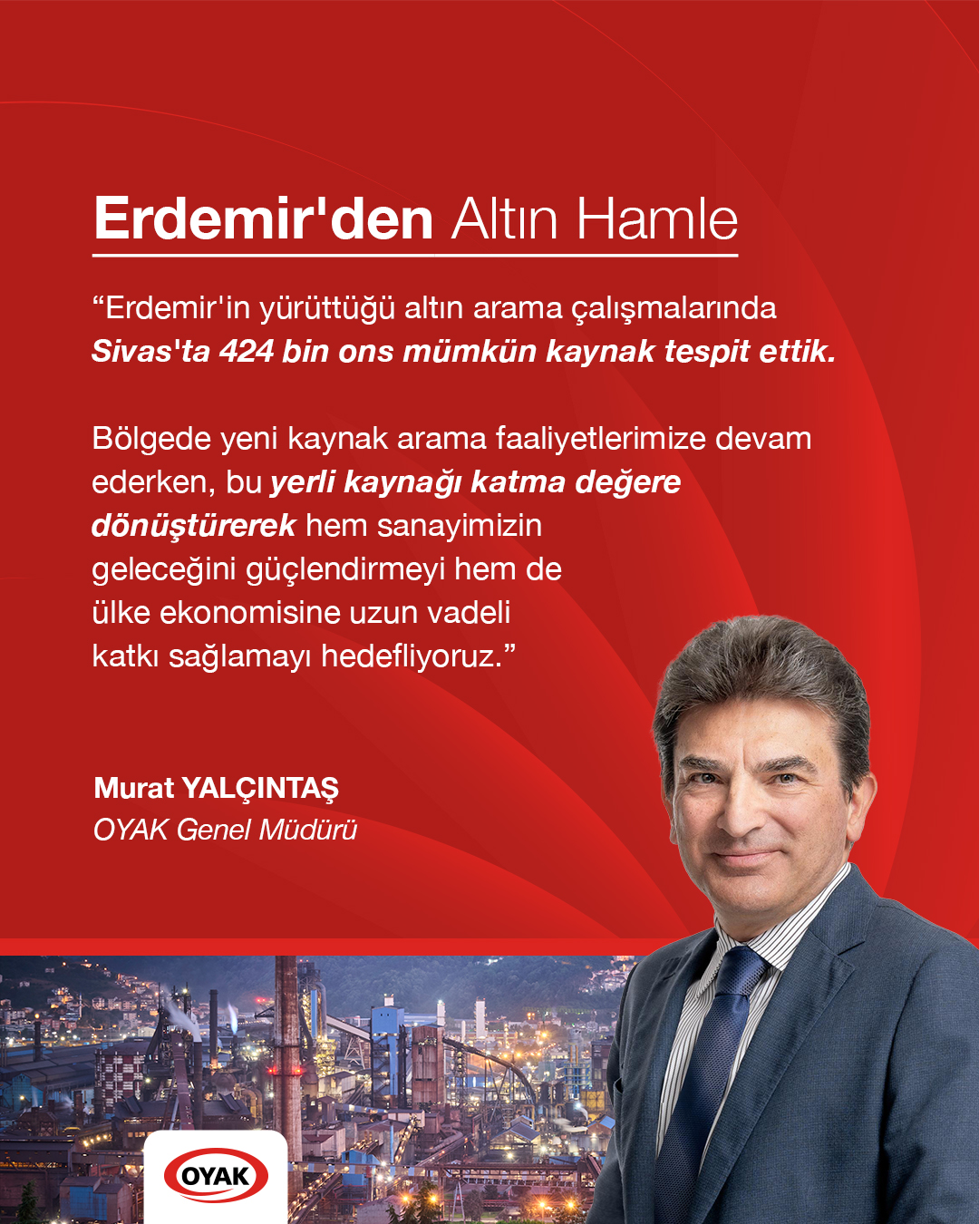 “Çelik sektöründeki gücümüzü madencilik alanında da stratejik bir büyüme hamlesine dönüştürmüş durumdayız. Ülkemizin yer altı zenginliklerini sürdürülebilir bir yaklaşımla ekonomiye kazandırmak bu stratejimizin en önemli parçasını oluşturuyor. Ermaden, Sivas-Alacahan sahasında yürüttüğü titiz ve aralıksız sondaj çalışmaları neticesinde, 424.000 ons gibi çok kıymetli mümkün kaynağını ortaya çıkardı. Bu keşfi, doğru strateji ve kararlı çalışmalarımızın ilk ve önemli bir meyvesi olarak görüyoruz. Aynı bölgede yeni kaynak arama faaliyetlerimize devam ederken, bu yerli kaynağı katma değere dönüştürerek hem sanayimizin geleceğini güçlendirmeyi hem de ülke ekonomisine uzun vadeli katkı sağlamayı hedefliyoruz.