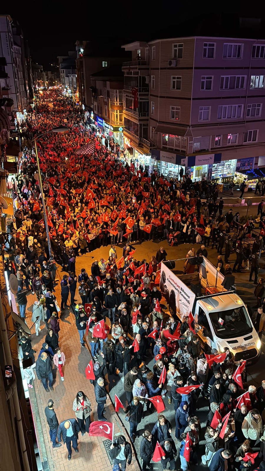 Atatürk ve Cumhuriyet sevgisini hep bir ağızdan haykıran, omuz omuza Türk Bayrağı’nı dalgalandıran halk, sokakları insan seline döndürdü. Elde Türk Bayrağı, dilde Atatürk ve Cumhuriyet sevgisiyle kadınından çocuğa, gencinden yaşlısına hep birlikte marşlar ve şarkılar eşliğinde yürüyen Kdz. Ereğli halkı, cumhuriyetin kalesi olduğunu bir kez daha gösterdi. Vatandaşlar, “Mustafa Kemal’in Askerleriyiz’ diye hep birden haykırdı.