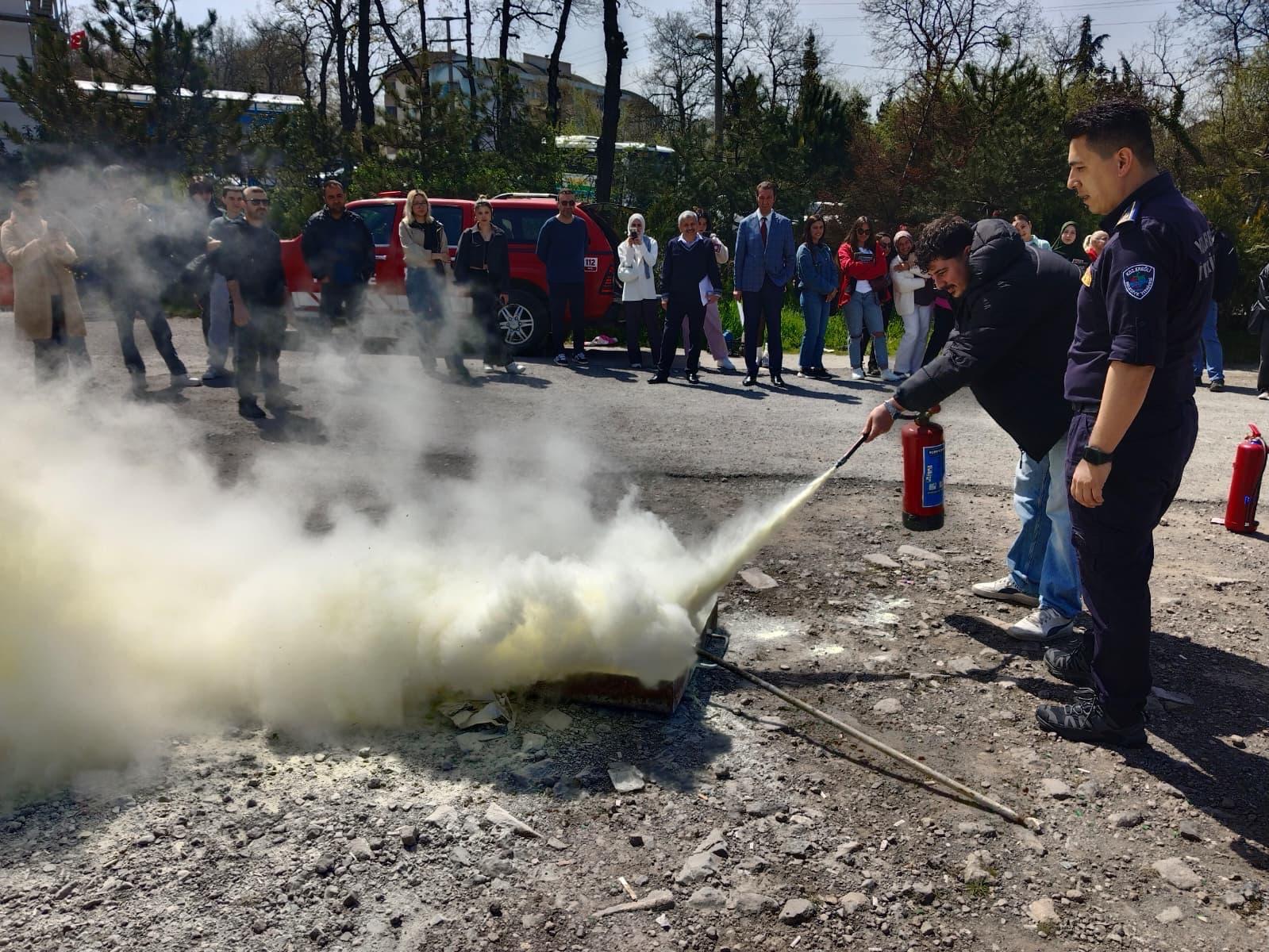 Kdz. Ereğli Belediyesi İtfaiye Müdürlüğü, Turizm Fakültesi Dekanı Prof. Dr. Avni Yıldız’ın katılımıyla, Turizm Fakültesi çalışanlarından oluşan Acil Durum ekipleri ve öğrencilerine konferans salonunda gerçekleştirilen 1 saatlik eğitimin ardından sahada yangın söndürme tatbikatı yapıldı, cihazı kullanımı ve özellikleri anlatıldı. Acil Durum ekipleri tarafından temsili yangın söndürme işlemi gerçekleştirildi. Eğitime katılanlara İtfaiye Müdürlüğü tarafından hazırlanan ‘Yangın Söndürme Cihazı Kullanımı’, ‘Evde Güvenli Yaşam’ ve ‘Temel Deprem Bilgisi’ adlı eğitici kitapçıklar dağıtıldı. Turizm Fakültesi Dekanı Prof. Dr. Avni Yıldız, eğitimi veren İtfaiye Amiri Burak Demirören’e teşekkür belgesi takdim etti.