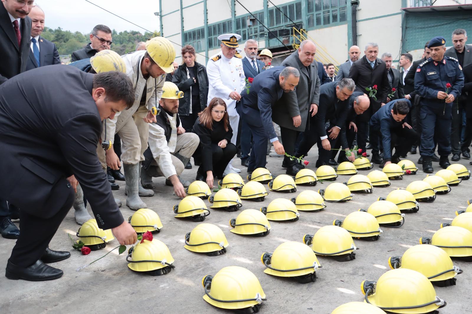 Törende Amasra Maden Şehitleri Anıtı önüne 43 madenci bareti konuldu. Protokolün maden şehitliğine karanfiller bırakmasının ardından Kuran-ı Kerim tilavetini İl Müftüsü Ömer Keskin ile birlikte imamlar okudu.