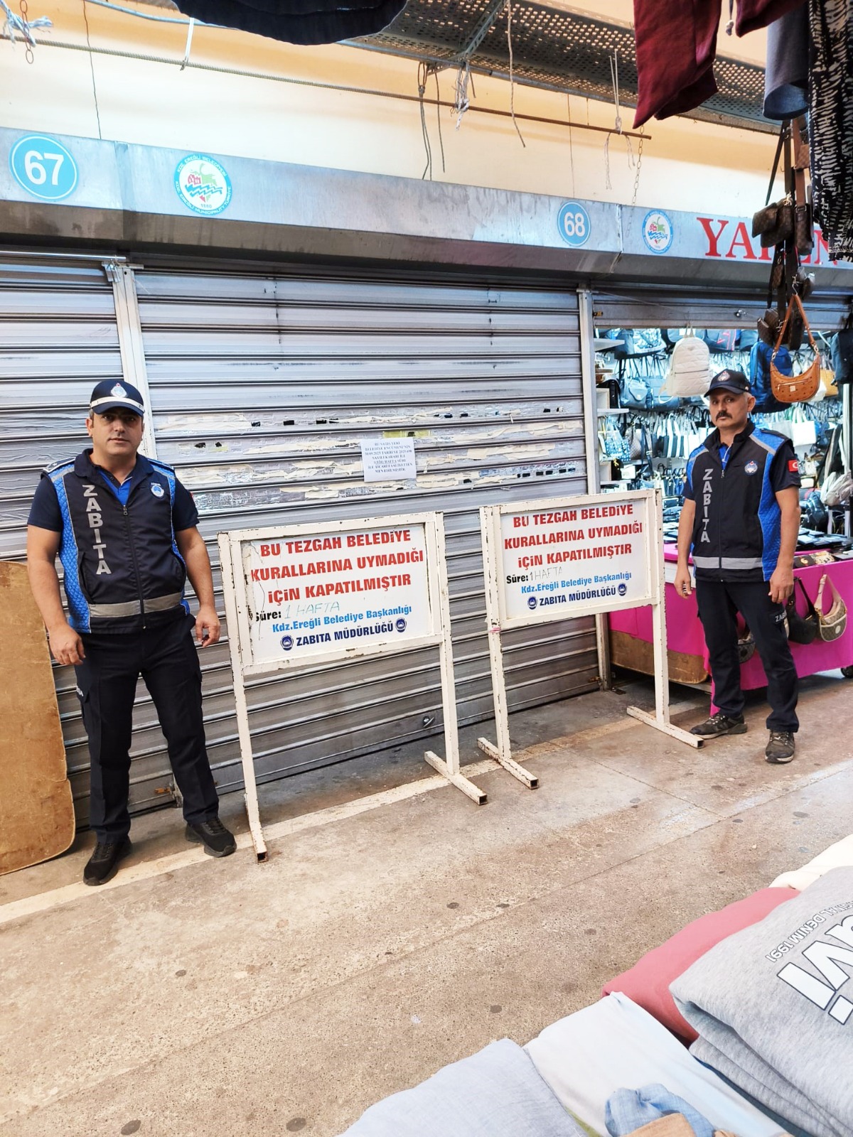 Ekiplerinin incelemesi sonrası müşteriye kaba davranan ve hakarette bulunan 2 tezgah encümen kararıyla bir hafta süreyle kapatıldı. Cumartesi pazarında müşteriye kaba davranan sebze-meyve tezgahı ile Kapalı Pazaryeri Tuhafiye bölümünde satış yapan esnafın tezgahı belediye encümenince 23.09.2025 tarih ve 2025/478 sayılı kararı ile bir hafta süreyle kapatıldı. Zabıta Müdürü Halit Aydın, müşteriye kaba davranan, hakarette bulunanlara bundan sonra da gerekli cezai işlemlerin uygulanacağını belirtti.