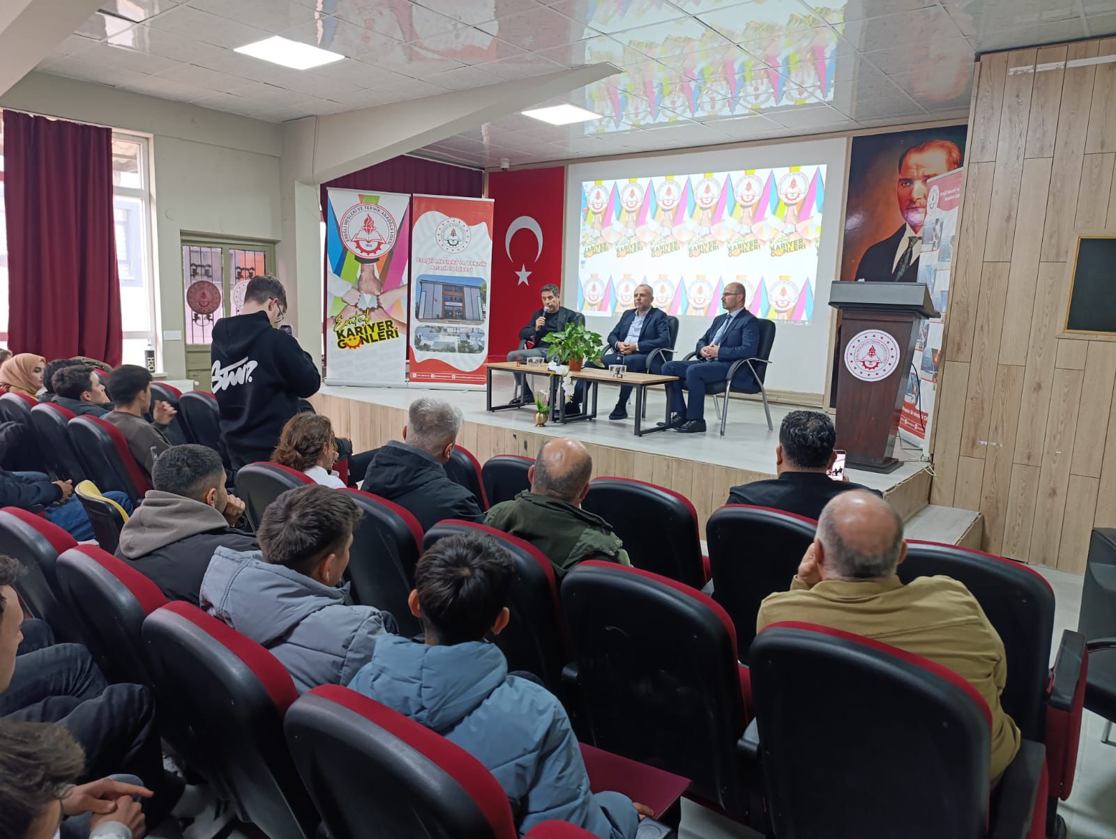 Karadeniz Ereğli Mesleki ve Teknik Anadolu Lisesi (EMTAL) Müdürlüğü tarafından düzenlenen “EMTAL Kariyer Günleri” etkinlikleri kapsamında, Kdz. Ereğli Ticaret ve Sanayi Odası Başkanı ve Okul Protokol Yürütme Kurulu Başkanı Arslan Keleş ile TSO Yürütme Kurulu Üyesi ve ÇEMSAN Çelik Servis Merkezi sahibi iş insanı Serdar Bakkaloğlu öğrencilerle bir araya geldi.