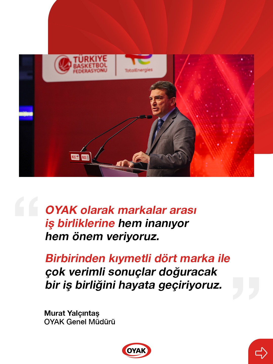 TotalEnergies İstasyonları, “Enerjisi Güzel Takım” sloganıyla tüm yaş kategorilerinde A Millî Kadın ve Erkek Takımlarının Ana Sponsoru olurken, Renault ise Türkiye Sigorta Basketbol Süper Ligi’nin Ana Sponsorluğunu üstlendi. "OYAK olarak, sahip olduğumuz markaların gücüne güç katmayı sürdüreceğiz" denildi.