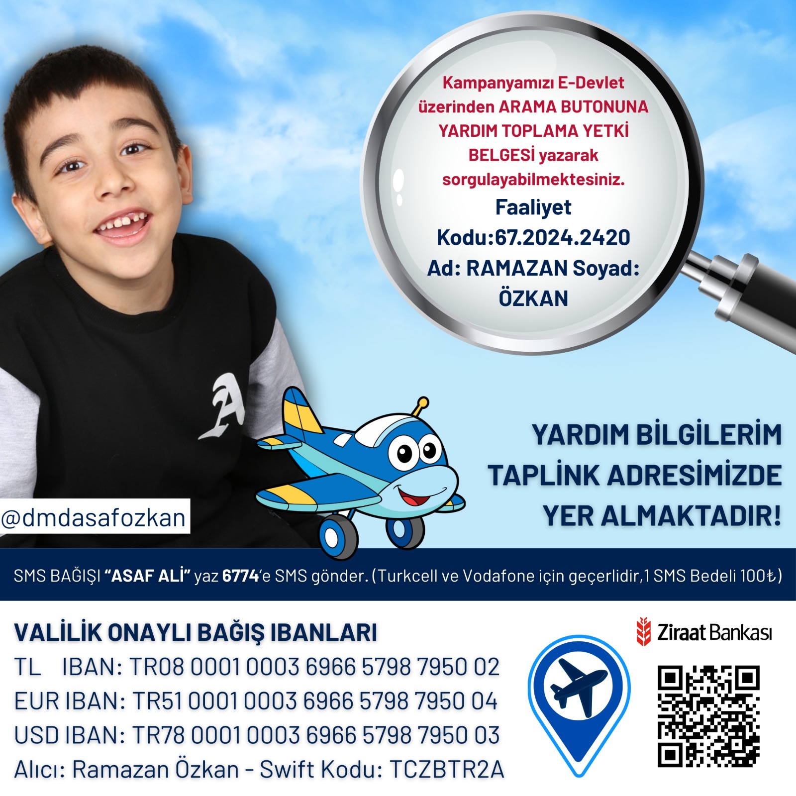 Kendisi hemşerimiz Çaycuma ilçemizde yaşayan ve 9 aylık iken ölümcül kas hastalığı Duchenne Musküler Distrofi tanısına (DMD) yakalanan 7 yaşındaki Asaf Ali Özkan'ın sizlerin desteğine ihtiyacı var.