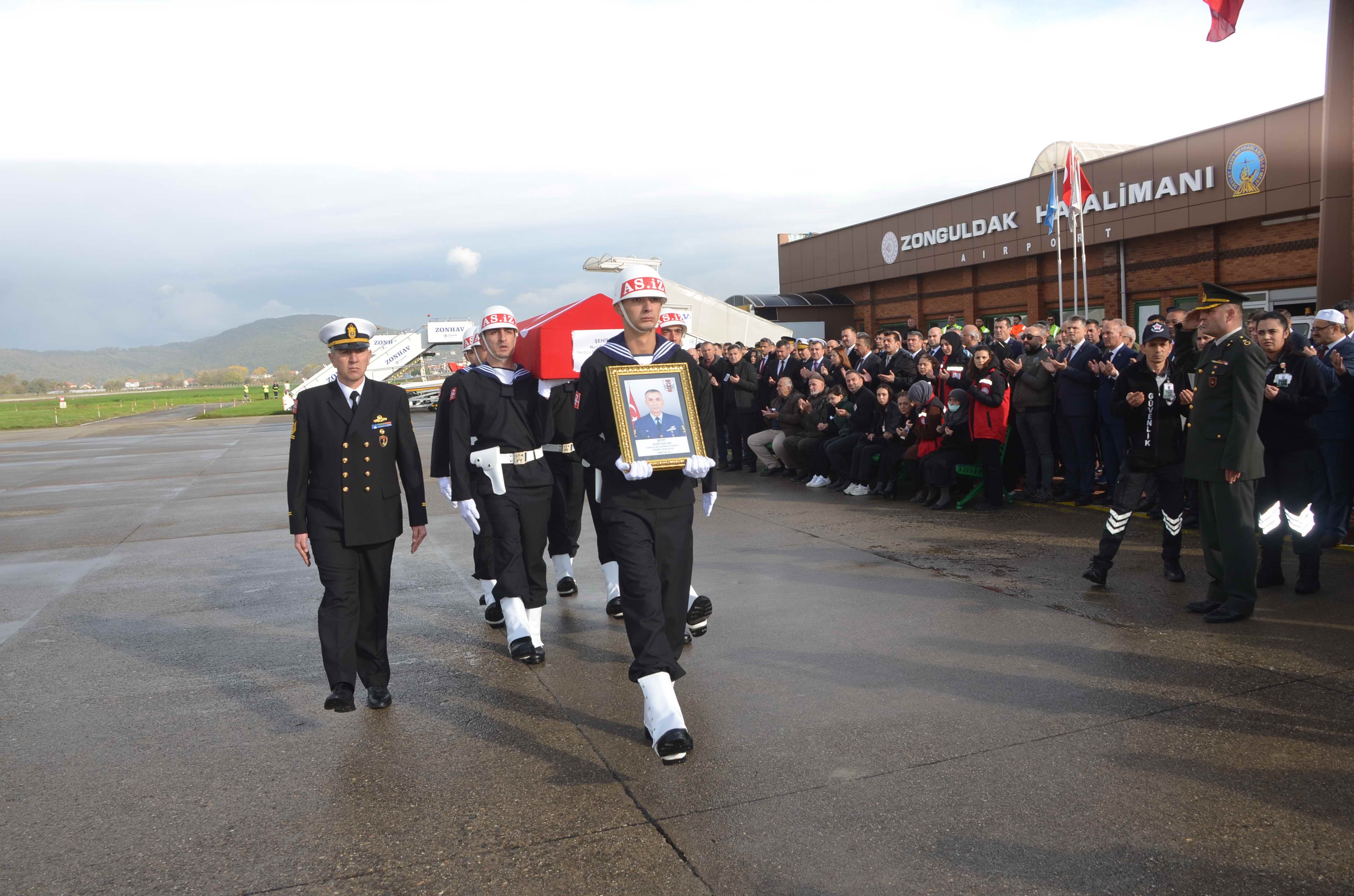 Gürcistan'da C-130 askeri kargo uçağının düşmesi sonucu şehit olan Kıdemli Başçavuş Nuri Özcan'ın naaşı Ankara'daki törenin ardından Zonguldak Havalimanı'nda karşılandı.