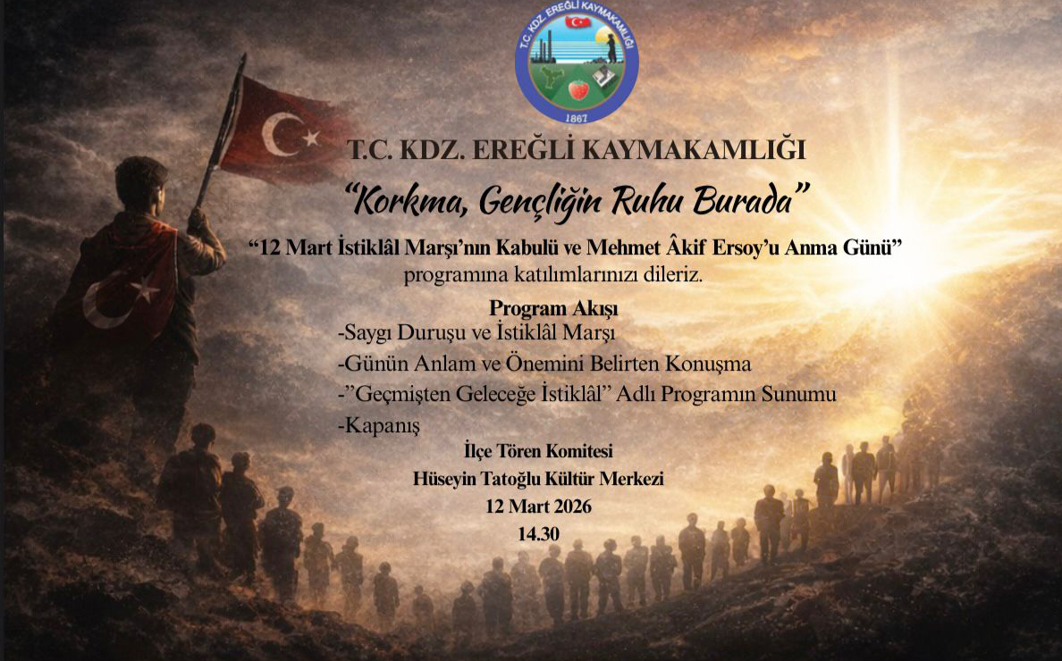 11.3.2021 10:38 2034Karadeniz Ereğli’de de gerçekleştirilecek "12 Mart İstiklal Marşı'nın Kabulü ve Mehmet Akif Ersoy’u Anma Günü" programı açıklandı. ...