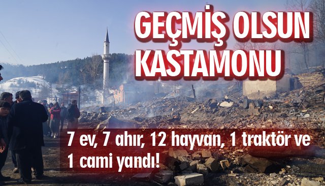 31.3.2022 10:49 2324Kastamonu’da çıkan yangında 7 ev, 7 ahır, 1 cami yanarak kullanılmaz hale geldi. 12 büyükbaş hayvan telef oldu, 1 traktör de küle döndü...