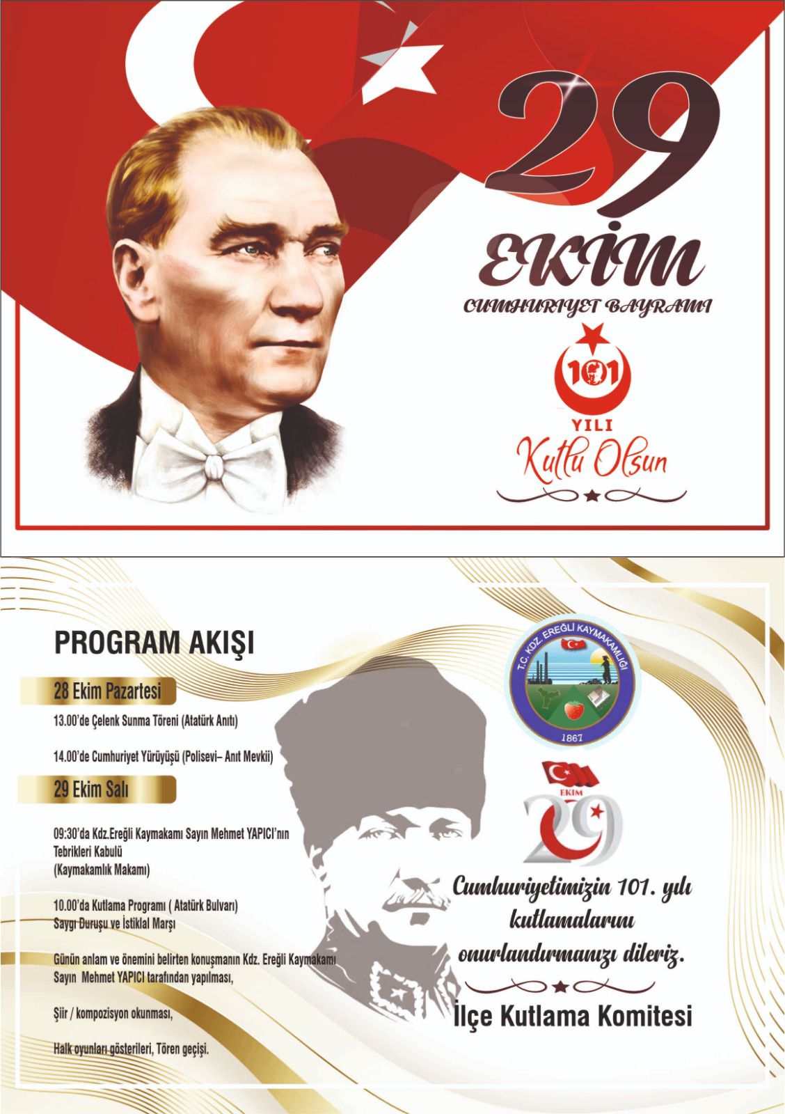 27.10.2025 09:13 1065Karadeniz Ereğli’de Cumhuriyetin 102’inci yılı kutlamaları gerçekleştirilecek. İlçe Kaymakamlığı’nca yapılan bildirimde 29 Ekim Cumhuriyet Bayra...