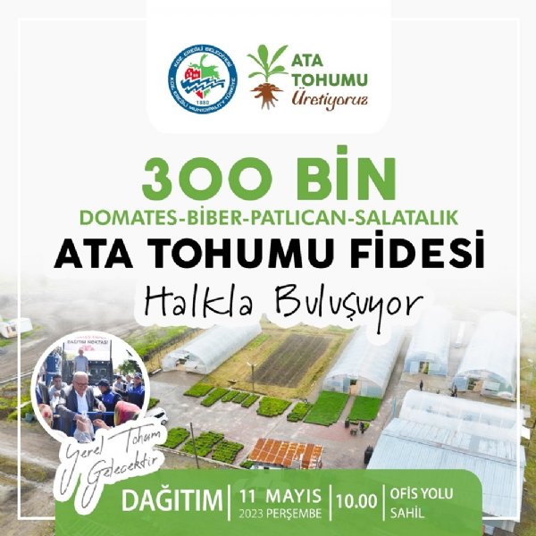 “Temizlik İşleri Müdürlüğü Park ve Bahçeler Birimi tarafından belediyenin Delihakkı’da bulunan seralarında üretilen ata tohumlarının dağıtımı için bu yıl müracaat almayacağız, Perşembe günü saat 10’dan itibaren Erdemir Ofis yanındaki yerimizde halka ücretsiz olarak dağıtacağız.