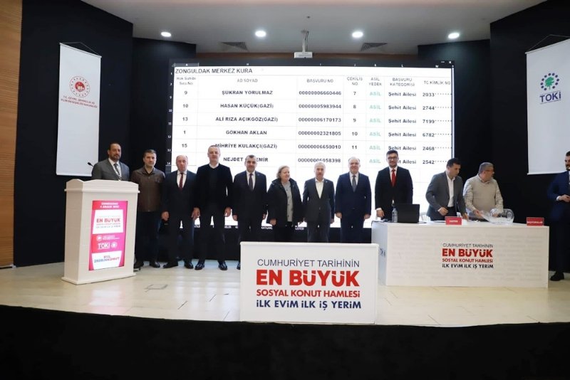 Konferans salonunda yapılan kura çekimine, Zonguldak Valisi Mustafa Tutulmaz, Ak Parti Milletvekili Hamdi Uçar, Ahmet Çokakoğlu, Zonguldak Belediye Başkanı Selim Alan, Zonguldak Gençlik Hizmetleri ve Spor İl Müdürü Hakan Yüksel ve hak sahipleri katıldı.