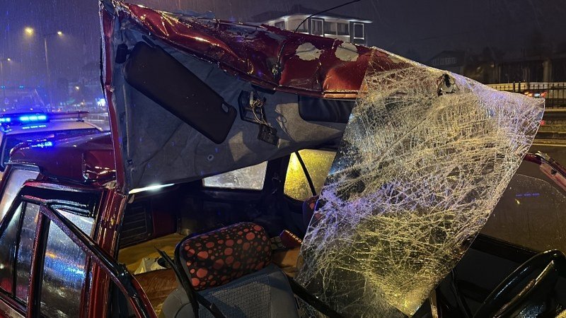 Bir tonluk borular otomobile ok gibi saplandı… BİR KİŞİ YARALANDI