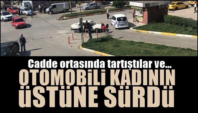 Cadde ortasında şiddetli tartışma… Otomobili kadının üstüne sürdü