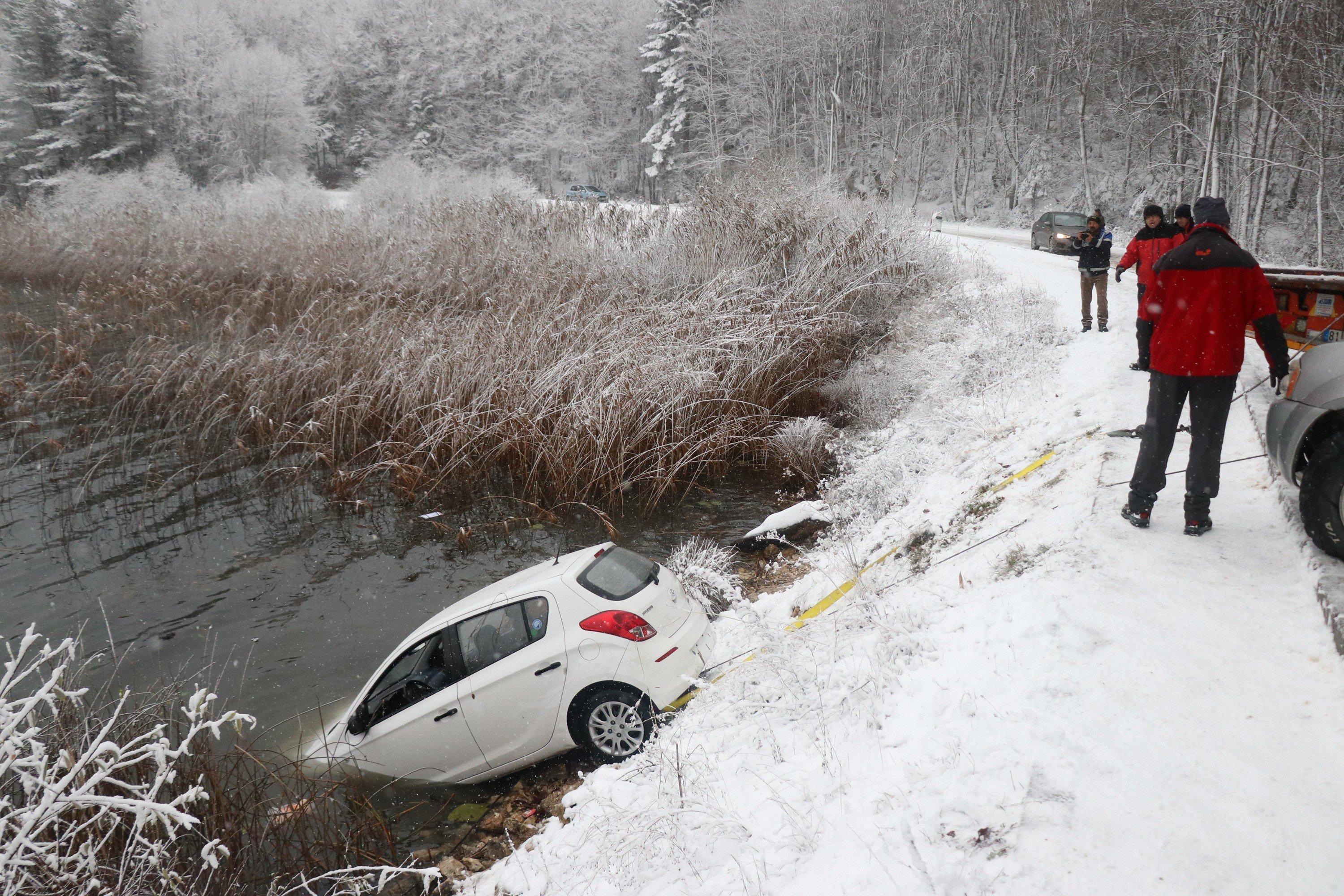 Edinilen bilgiye göre, tatil için Abant Tabiat Parkı’na gelen Arzu Doğan ve Mesut Yılmaz, göl çevresinde araçlarıyla seyir halindeyken kar nedeniyle kontrolden çıkan otomobil Abant Gölü’ne uçtu. Sürücü Arzu Doğan ve araçta yolcu olarak bulunan Mesut Yılmaz, bir kısmı suya gömülen otomobilden kendi imkanlarıyla çıkarak kıyıya kadar yüzdü.