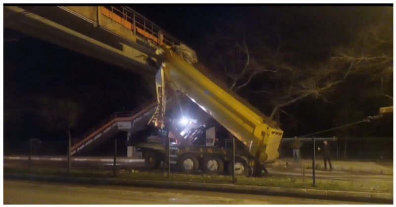Olay gece saatlerinde Milli Egemenlik caddesi üzerinde meydana geldi. Zonguldak'tan Kozlu ilçesine seyirde olan 06 FV 8223 plakalı tırın dorsesi Milli Egemenlik Caddesi üzerinde açılarak üste geçide takıldı. Çevredekilerin haber vermesi üzerine olay yerine polis ekipleri çağrıldı. Ardından uzun uğraşlar sonucunda vinç yardımıyla üst geçide takılan dorse kurtarıldı. Öte yandan ilginç kazada can kaybı olmazken üst geçitte hasar meydana geldi.
