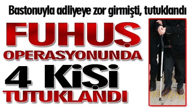 Zonguldak'ta aralarında günlük kiralık evlerde fuhşa teşvik, yer temini ve aracılık etme suçlamalarıyla polisin teknik takibine takılan 6 şüpheliden 4'ü tutuklanarak cezaevine gönderildi. Tutuklananlar arasındaki 60 yaşındaki Ş.K. da bastonuyla adliyenin merdivenlerini güçlükle çıkmıştı.