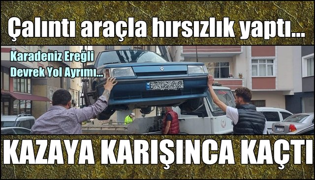 24.4.2022 23:00 2570Karadeniz Ereğli ilçesinde çaldığı araç ile hırsızlık yapan zanlı, İstanbul yol ayrımı mevkiinde yaptığı kaza sonrasında polise haber verilmesi üzerine a...