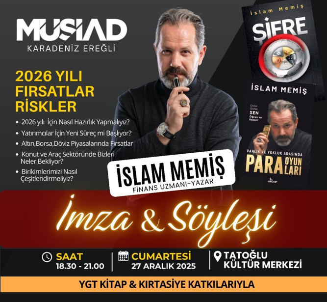 MÜSİAD Karadeniz Ereğli Başkanı Kemal Gülbay Finans Uzmanı-Yazar İslam Memiş’in katılımı ile söyleşi-imza programı düzenlediklerini bildirdi.