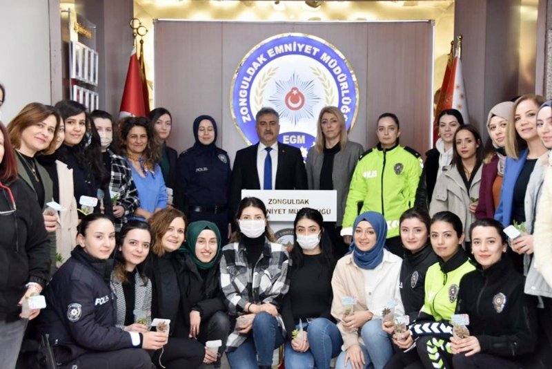 Zonguldak İl Emniyet Müdürü Fahri Aktaş , kadın polislerin kadınlar gününü kutladı.