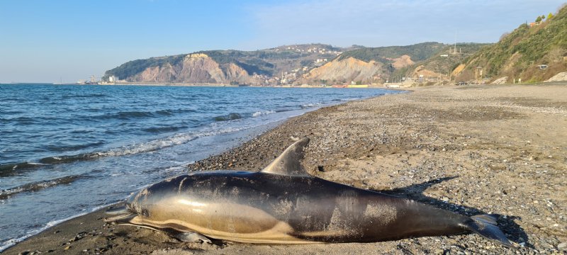 Zonguldak'ın Ereğli ilçesinde sahilde ölü yunus bulundu.