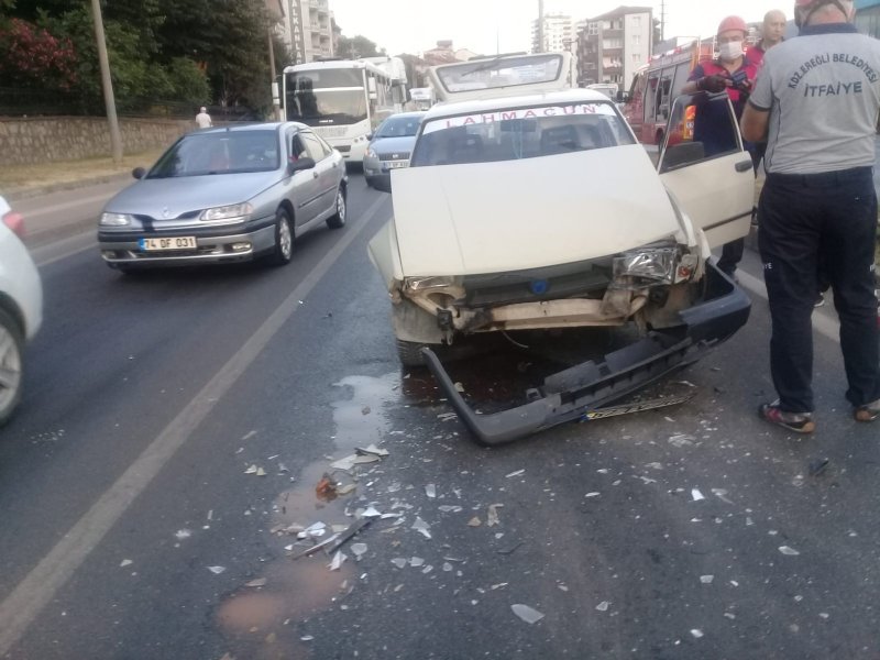 Karadeniz Ereğli'de bir otomobil kırmızı ışıkta bekleyen diğer araca arkadan çarptı. Kazada 1 kişi yaralandı.