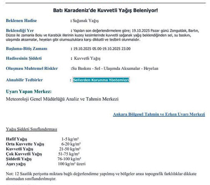 24.11.2023 17:38 2484Açıklama şöyle: METEOROLOJİK UYARI! Saygıdeğer vatandaşlarımızın dikkatine ! Son meteorolojik değerlendirmelere göre hafta sonunda; &...