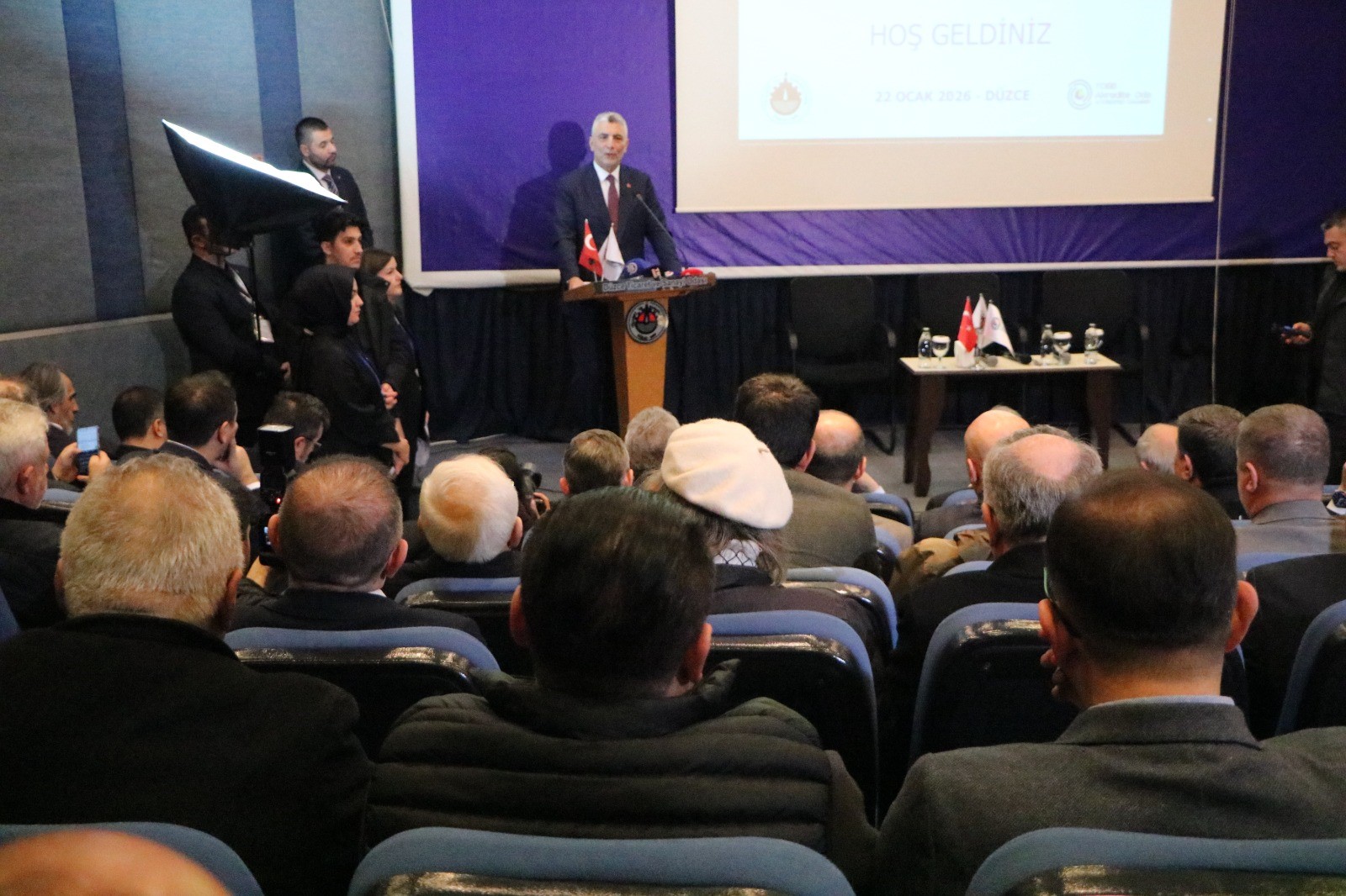 Bir dizi ziyaret ve temaslarda bulunmak üzere Düzce'ye gelen Ticaret Bakanı Ömer Bolat, Düzce Ticaret ve Sanayi Odası'nda (TSO) düzenlenen İş Dünyası İstişare Toplantısı’na katıldı. Bolat'a Düzce Valisi Mehmet Makas, Düzce Belediye Başkanı Faruk Özlü, AK Parti Genel Merkez ve il teşkilatı yöneticileri, daire amirleri, sektör temsilcileri ve çok sayıda iş insanı eşlik etti.