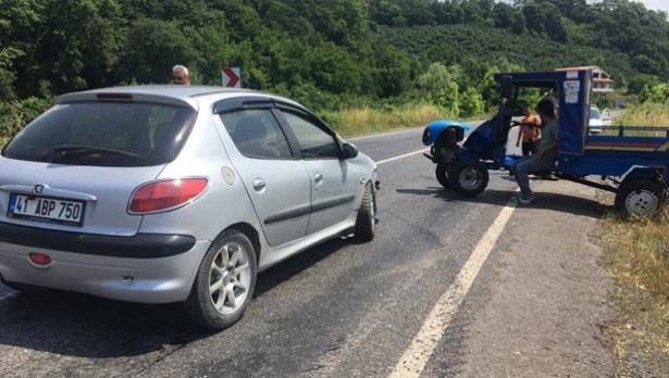 TARIM ARACI İLE OTOMOBİL ÇARPIŞTI: 3 YARALI