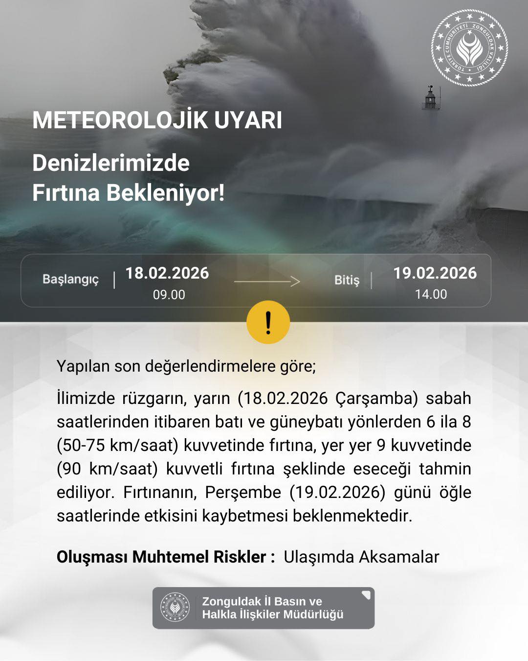 20.4.2022 14:44 2822Meteoroloji Genel Müdürlüğü, 9. Bölge Müdürlüğü'nce Batı Karadeniz için fırtına uyarısı yapıldığı bildirildi. Valili...